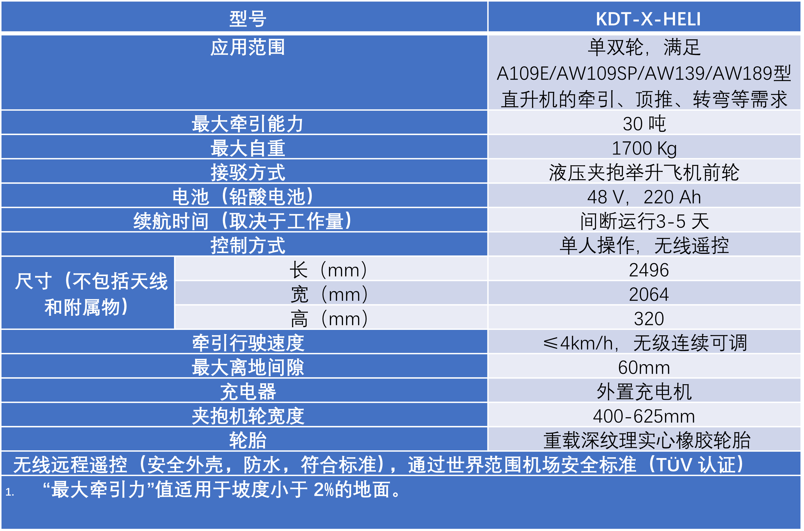 KDT-X-HELI无线遥控飞机牵引车是格林斯通(北京)航空服务有限责任公司在国内研发生产的符合 中国市场的一款小型飞机牵引车,无线遥控式飞机牵引车目前在全球得道了广泛的应用和广大用户的喜爱。科德沃为满足中国市场飞机地面保障用户对小型化设备的技术性能与操作维护性等方面的综合要求,研发了该型设备,其主要部件、驱动电机、控制器、电池、操控系统均为原装进口,其借鉴了国外诸多品牌飞机牵引车的优越特性,更加可靠安全的运行并直接降低飞行前机务人员的体力输出,且只需要极低的运营成本。